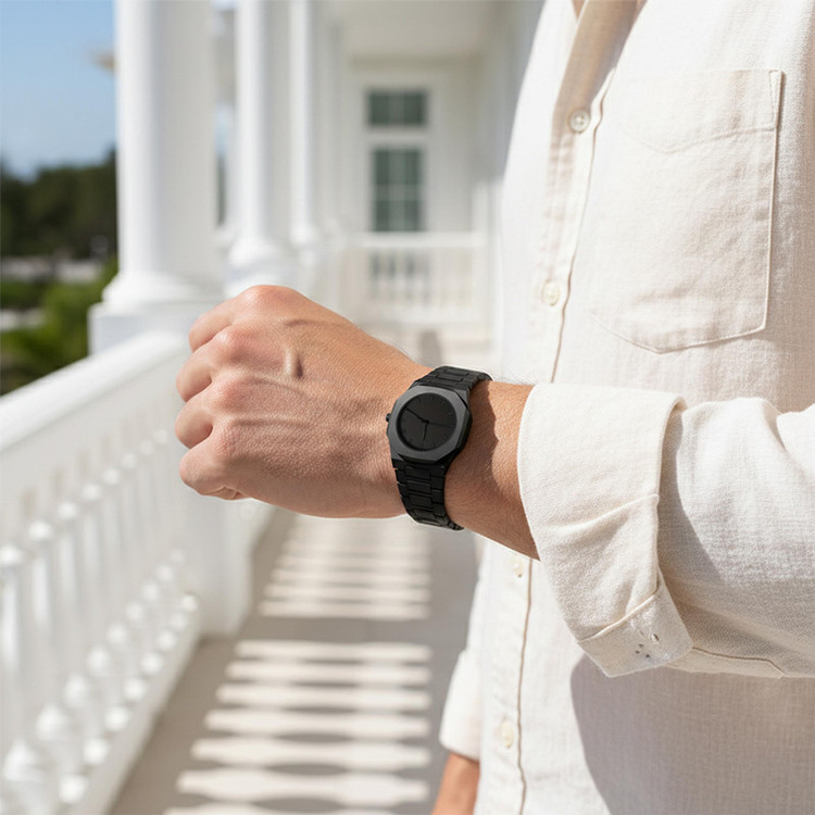 ساعت مچی کوارتز فول بلک اسپرت بند سبک قفل مخفی