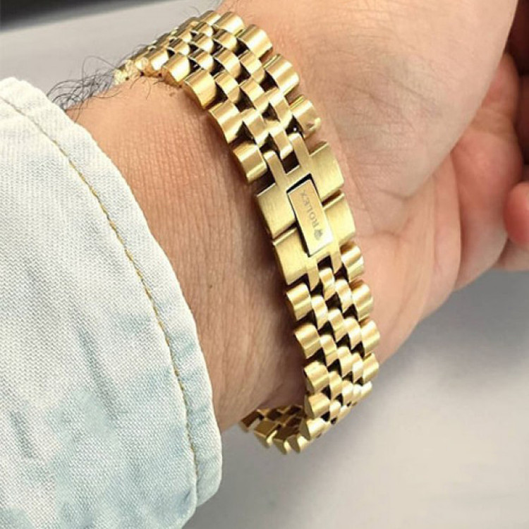 منسوجات به کار رفته در این دستبند عامل اصلی عدم حساسیت پوستی در بین افراد حساس میباشد. قیمت مناسب و کیفیت ساخت و طراحی ساده دستبند یکی از دلایل اصلی پرفروش و محبوب شدن این محصول در میان سایر مدل هاست. این دستبند به دلیل دارا بودن طرح یونیک و جذاب، طرفداران زیادی میان اهل مد دارد. مدل به روز، جلا و کیفیت بالا و البته روکش آب طلا چشم نوازی این محصول را چند برابر کرده است. فرقی نمیکند که شما از چه قشری باشید یا دارای چه نوع تیپ و پرستیژی باشید. اصالت دستبند شما بسیار فراتر از آن چیزی است که تصورش در مخیله اطرافیانتان بگنجد. نقوش درهمی که به واسطه چندین مرحله عملیات در ظاهر و بافت این نوع مدل انجام شده است، نه تنها به زیبایی آن می افزاید بلکه در لطافت طرح دستبند نیز اثر گذاشته است. این طرح جهانی با داشتن یک کارنامه درخشان دارای محبوبیت فوق العاده ای است. از میان اکسسوری ها، این دستبند کمترین مشکل را با ست و ترکیب کردن با دیگر زیورآلات و ساعت را دارد و به راحتی می توانید آن را با دیگر جواهرات استفاده کنید. در انتخاب این طرح مردد نباشید. به دلیل طرح همه پسند آن، شما می توانید به راحتی از آن استفاده کنید بدون آن که نگران ست بودن آن باشید. همچنین رنگ ثابت این دستبند آن را به انتخابی ایده آل برای دیدارهای دوستانه و عمومی تبدیل می کند. از سوی دیگر به هیچ وجه نباید راحتی و آسایش استفاده از محصول را قربانی شیک بودن و ظاهر دلربای آن کرد چرا که دستبند باید برای استفاده طولانی مدت و با توجه به فرم مچ انسان و دقت طراحی شده باشد تا ضمن حفظ رنگ و عدم ایجاد حساسیت، فشار روی مچ دست ایجاد نکند. چرا که نامناسب بودن دستبند و غیر اصولی بودن طراحی آن میتواند باعث کاهش تمرکز، احساس سنگینی نسبی و در طولانی مدت موحب سردرد شود. همین جزئیات ریز اما بسیار کاربردی این دستبند را انتخاب هر شخصی کرده که برای ظاهر خود ارزش قائل می باشد. به همین دلایل این محصول در سرتاسر جهان توسط هر قشری با هر ملاکی (حتی افراد سرشناس سخت پسند) مورد استفاده قرار گرفته است.